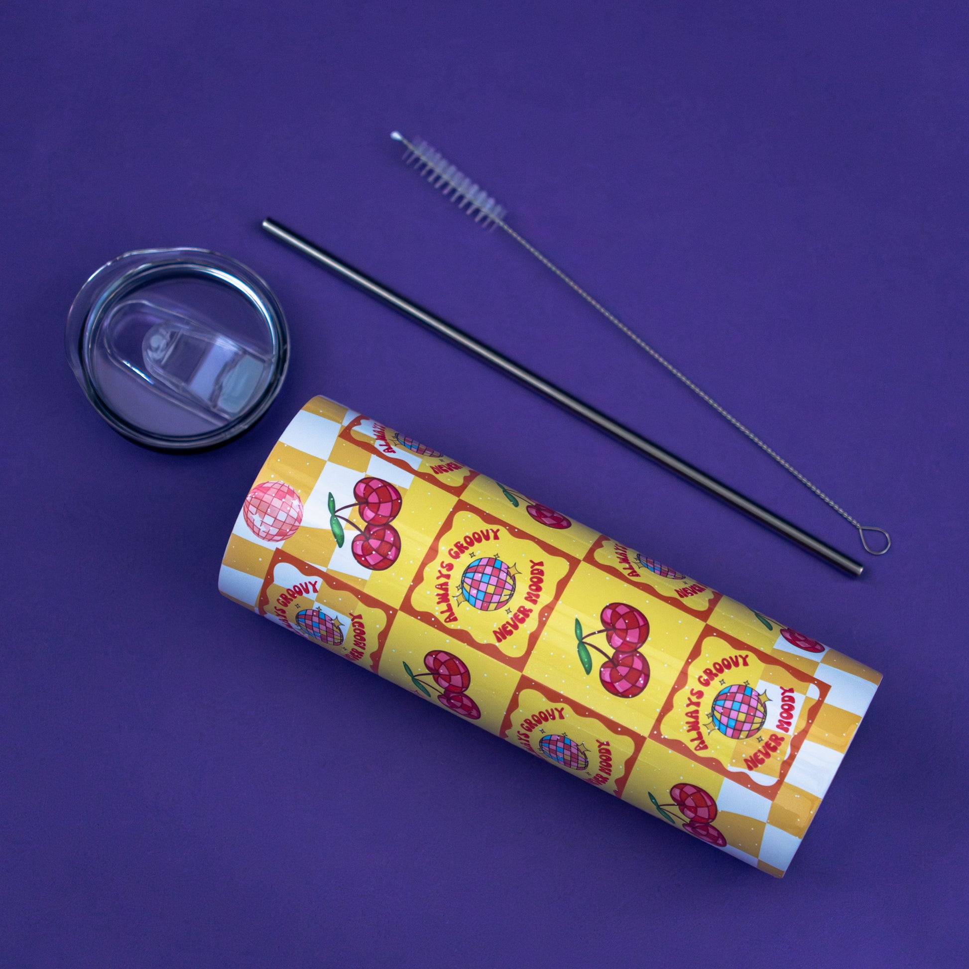 I’m wrapped in details that hit different: cherries that shine, a disco ball that dazzles, and retro vibes that make basic tumblers jealous!